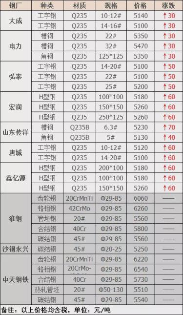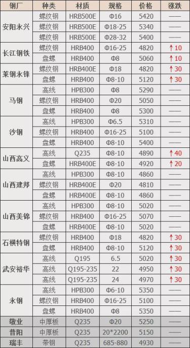 上調(diào)12家,占比48%,調(diào)價幅度10-70元/噸,