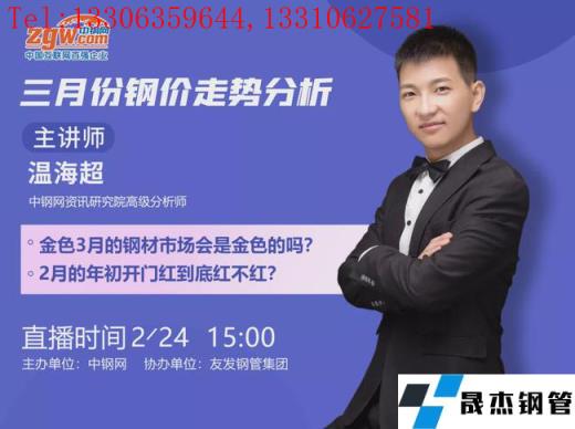 3月旺季臨近,精密鋼管市場會是金色的嗎?在庫存大幅走高,鋼價如何演繹?伴隨著政策監(jiān)管日益趨嚴,鐵礦石價格大跌之后,一季度還存在哪些機會?更多熱點資訊,請關(guān)注2月24日下午三點,2022年三月份行情直播會,河南銀商通實業(yè)有限公司總經(jīng)理孫建、資訊研究院高級分析師溫海超等,圍繞著“市場精密鋼管需求方向解析”、“當(dāng)下政策的影響”、“影響鋼價熱點話題”、“3月份鋼價走勢預(yù)測”等熱點話題鞭辟入里、層層分析。