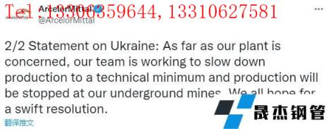 貿易消息人士稱,烏克蘭的幾家鋼鐵廠,包括管道制造集團 Interpipe以及位于馬里烏波爾的 Azovstal 和 Ilyich 精密管廠家,都是 Metinvest 的一部分,已經停止生產和運輸。Interpipe 向 Platts 證實,它已于2月初停止生產和發貨。2月24日開始罷工。