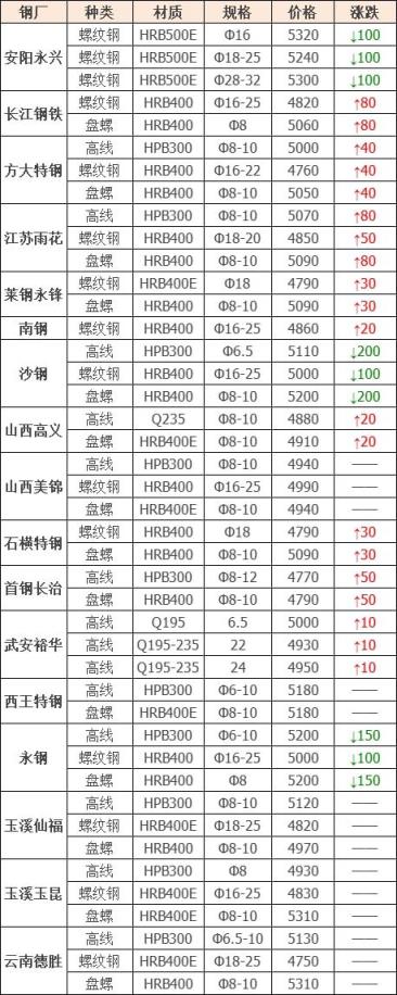3月1日廣東河源德潤鋼鐵廢精密管價格格漲50元:鋼筋切粒3530;邊角料,新鋼板料3500;純鋼筋頭,直鋼筋3480;模具鋼、料頭圓鋼、軌道鋼、火車輪3480;硅鋼片停收;冷軋、熱軋、碎料沖子3430;優重3480;鍛打料、馬蹄鐵3480;重廢3450;機械生鐵、高碳鋼、鑄鋼件、生熟混裝3450;厚剪3400,不含稅。
