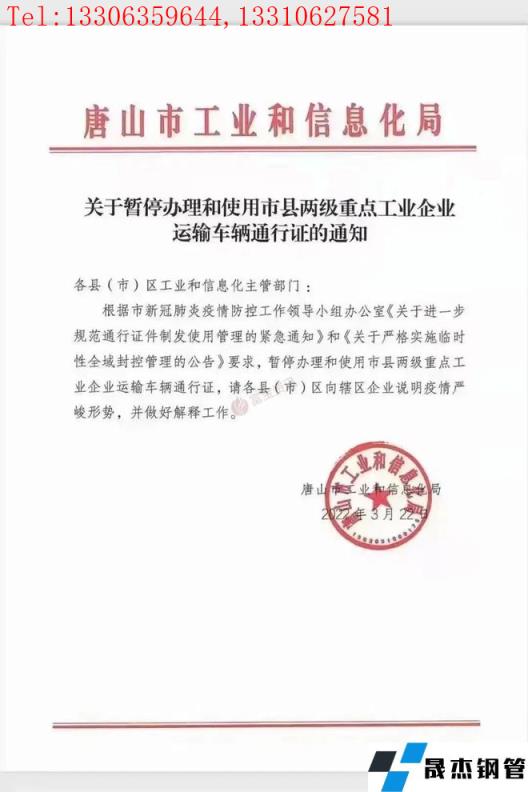 針對現階段唐山市轄區26家長流程鋼企調研了解如下:截止目前,唐山長流程鋼企在生產方面目前面臨最嚴重的問題仍然是由于交通管制帶來的原料進廠、成品材外輸。關于21日發布了重點工業企業辦理運輸車輛通行證的通知,據調研了解,目前長流程鋼企在文件下發后均積極申請,但相關部門對于審批相對謹慎,所以整體并未真正落地,僅個別精密管廠家少數原料運輸車輛得以批復,但也不能完全緩解整體原料緊張的局面。